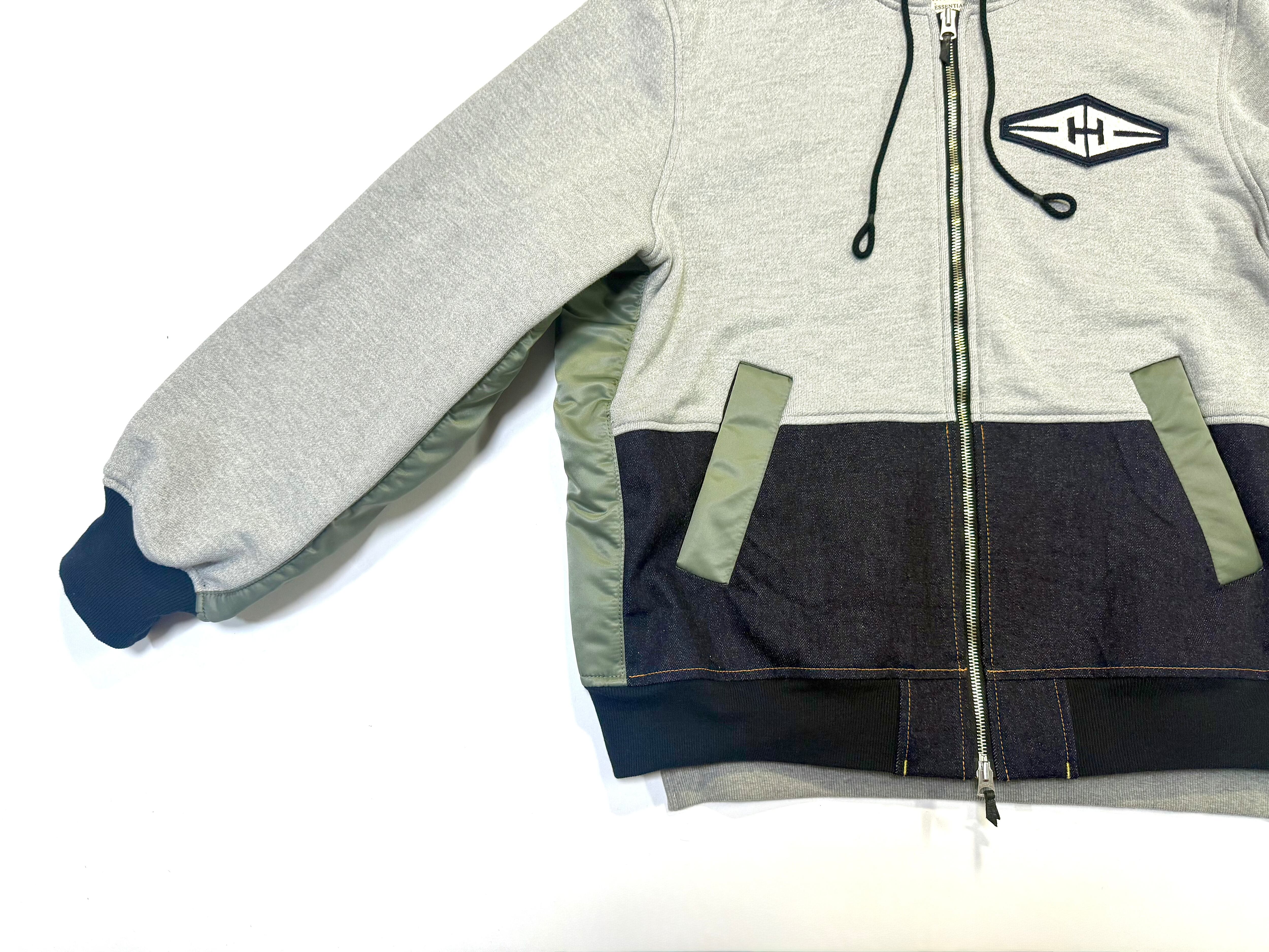 作品説明 : インビスタ社が創り上げたコーデュラナイロンを織り込んだ目付け350g/㎡のヘビー裏毛ニットとシレー加工されたミリタリーナイロンツイル、【憤 -fˈʌn-】DENIMを使用したパーカーになります。