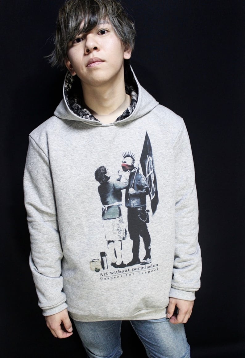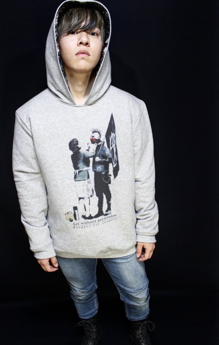 最大の特徴はフロントにプリントされたイギリスのグラフティーアーティスト【BANKSY】の作品です。