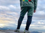 ふくらはぎから裾にかけては綿100%ビンテージ圧縮ニットを使いレギンスのように密着するように構成しております。