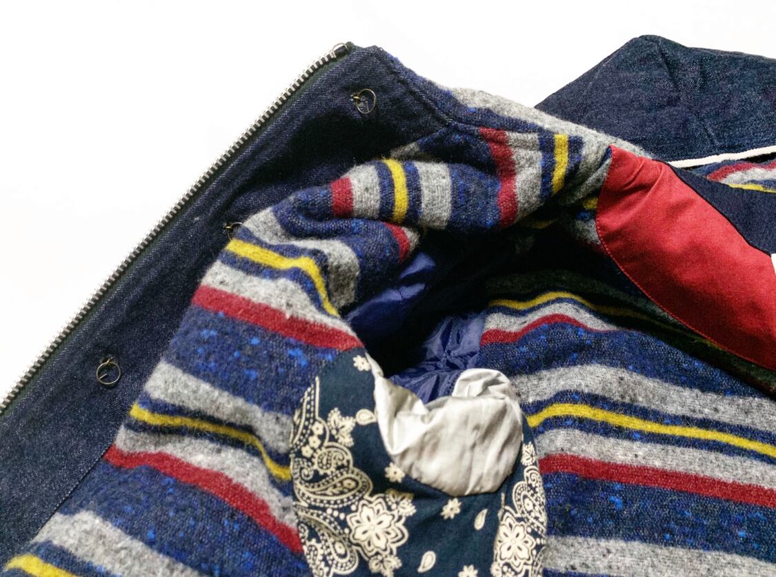今や入手不可のデッドストックのガラ紡生地を裏地に使っておりますので優しく、暖かく、あなたを包み込みます。