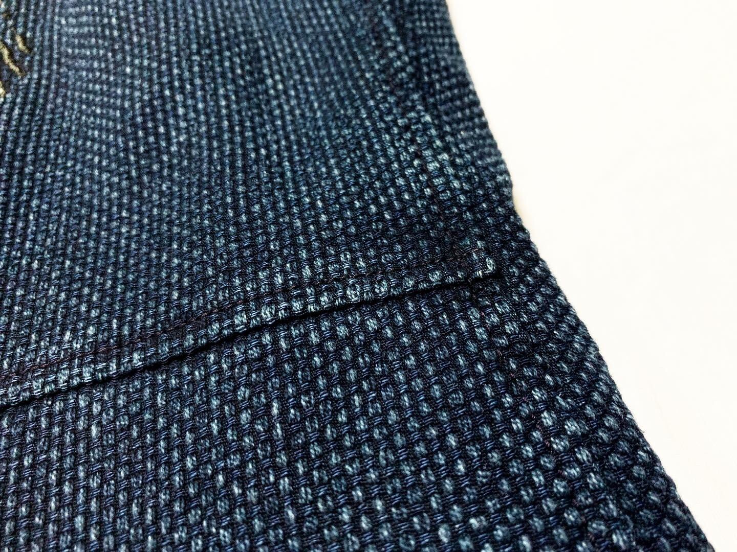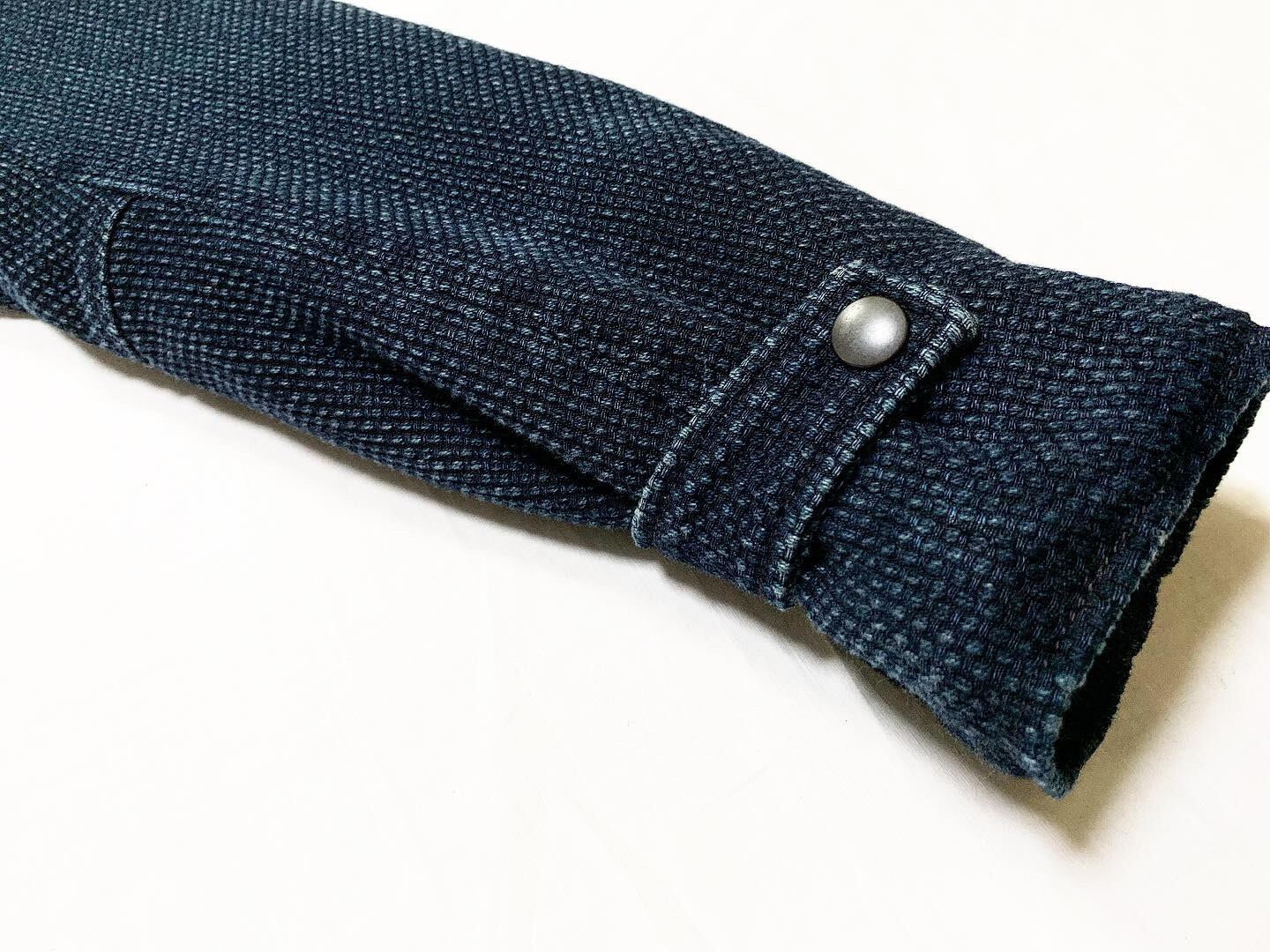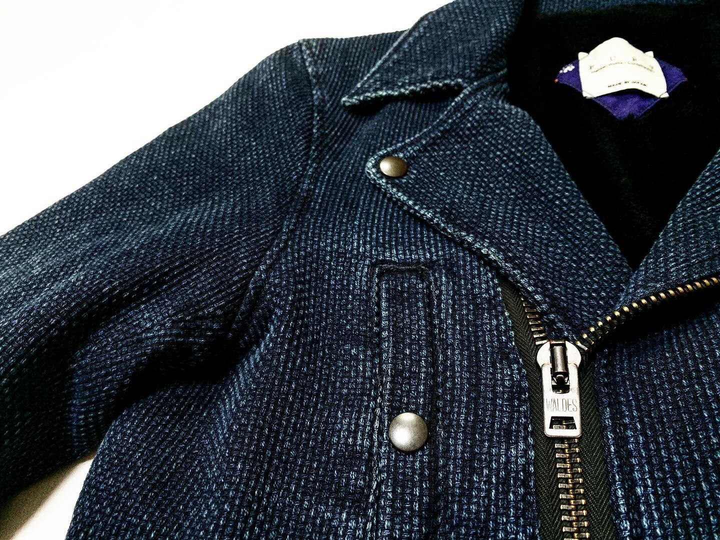 Item description: It is a rider's jacket that uses sashiko fabric woven with rope dyed with indigo dye.