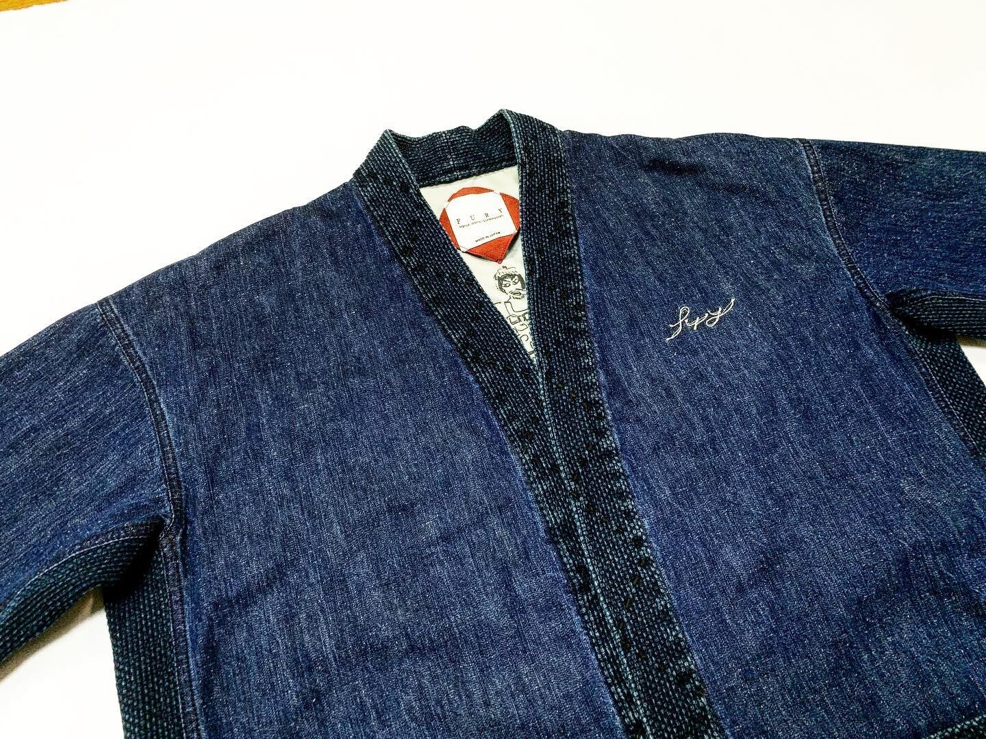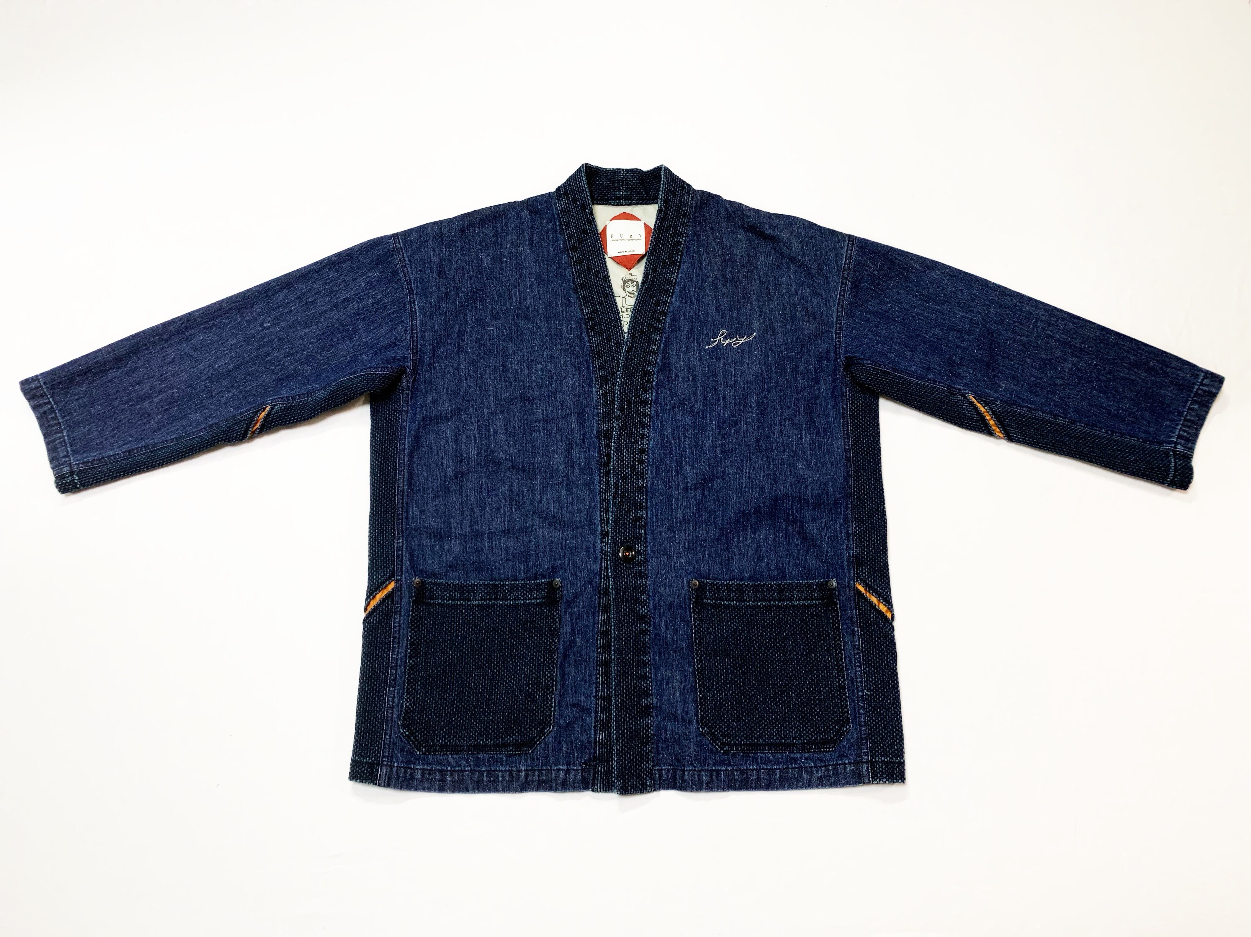 Product Description: FURY's original kimono shirt made of 9 ounce Nep blend indigo denim made of 100% cotton. (Nep denim is a denim fabric that is woven using a decorative thread that is made by mixing a knot of fibers at the yarn manufacturing stage and kneading them in.)