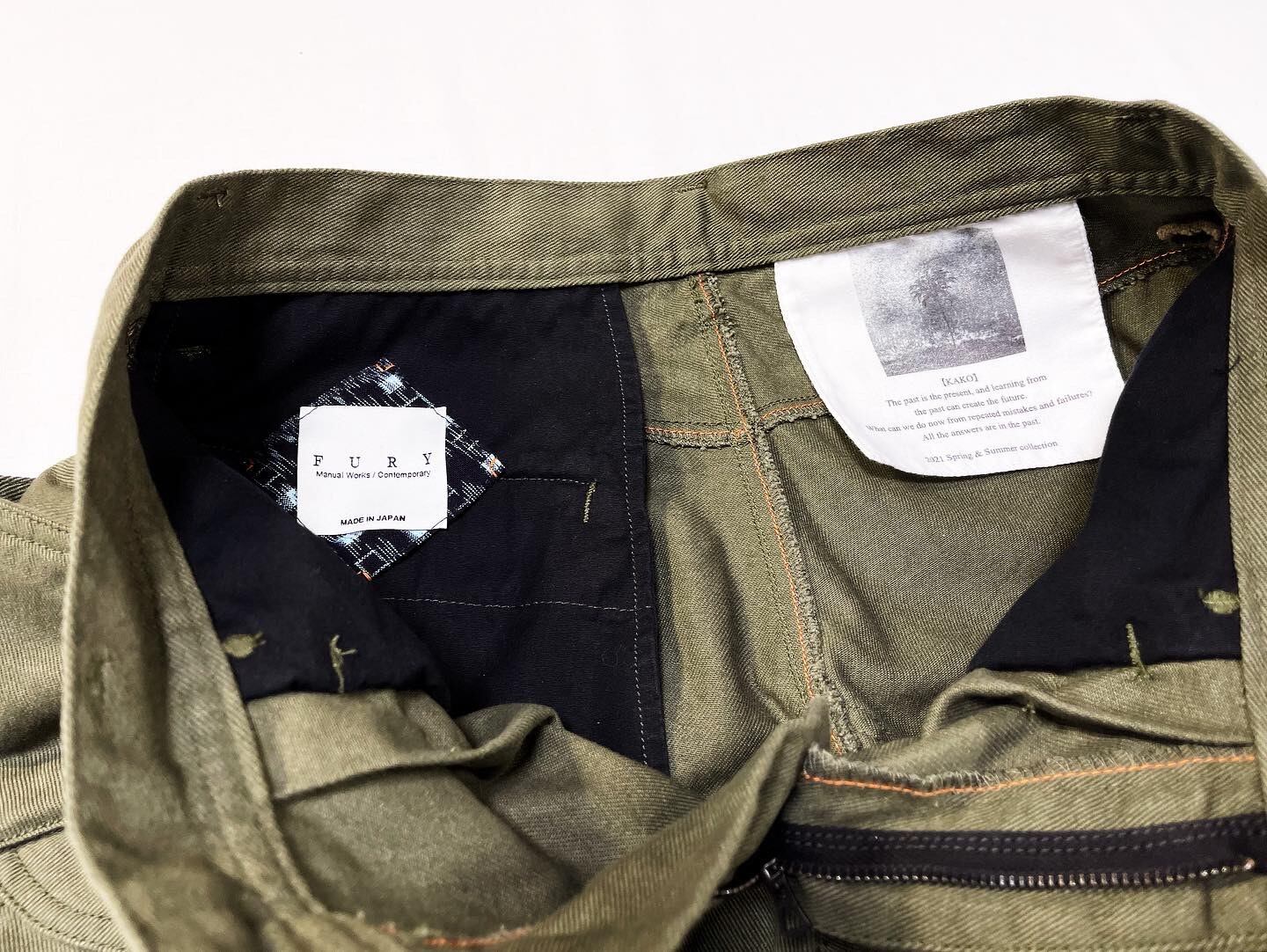ポケット向布部分に広島県最後の横振り刺繍職人《山下忠男》氏にFURY家紋ロゴを入れて貰ってます。
