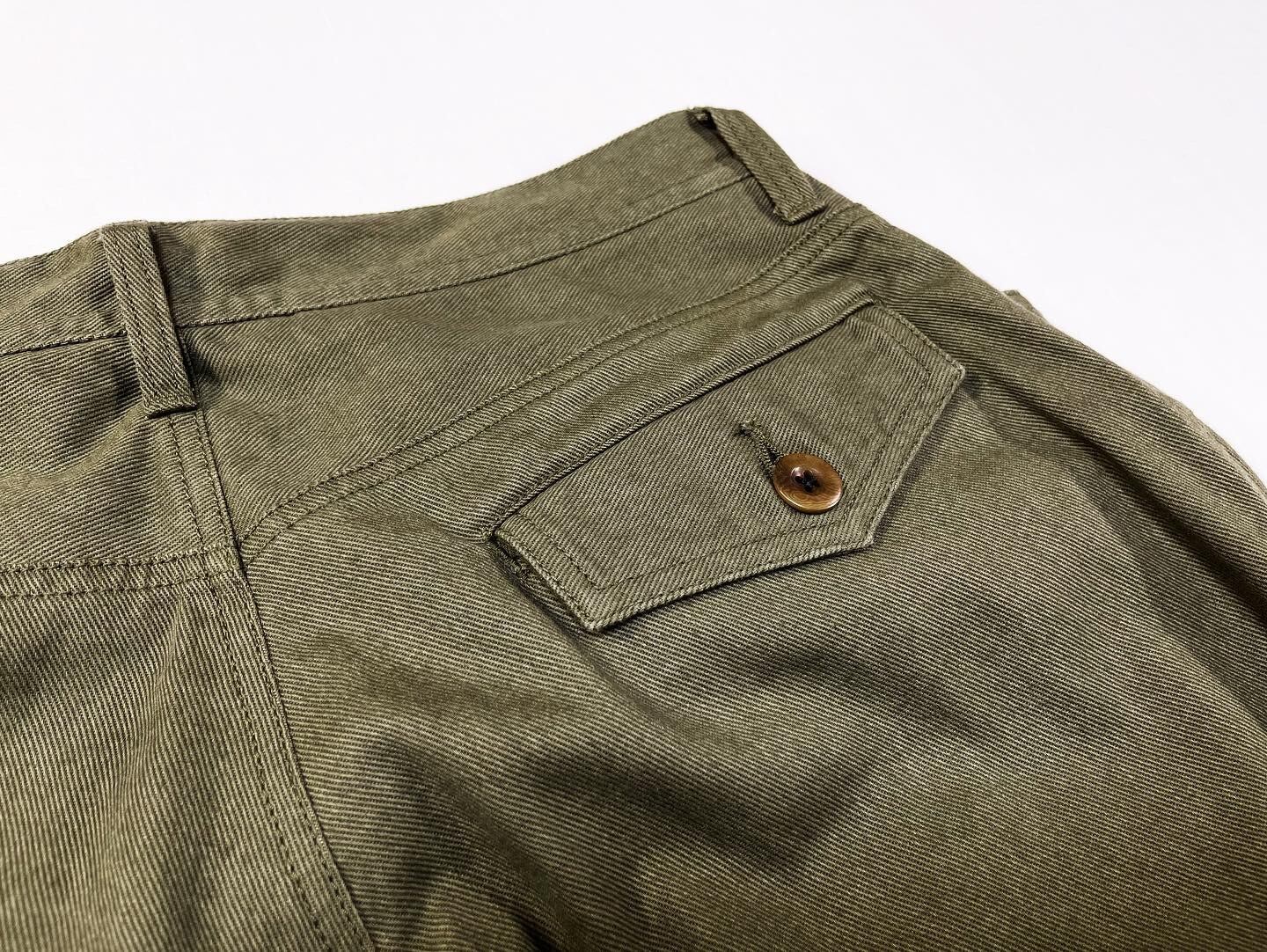 今季新たに新調されたワンタックパターンで作られたブリーチーズは太もも周りのゆとりをより強く打ち出し裾に向けテーパードを強めており裾脇にファスナー使用にし履きやすさ、そして少し開けばブームカットシルエットにもなる様に構成しました。