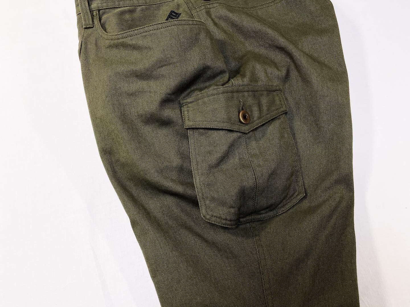 本生地はアメリカ軍のミリタリーアイテムの生地をリプロし、70×40で織られ反応ムラ染めで仕上げたミリタリー要素を強く含んだ上質な生地になります。