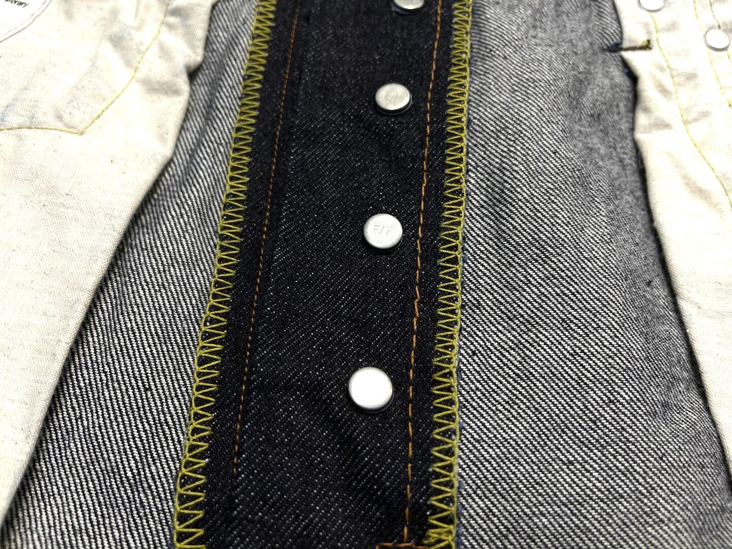 生地 : 岡山県は井原市にある1935年創業の山足織物合資会社にて縦糸と横糸の調合、打ち込み、耳の形状まで一から機屋と直で話し合いをして創り上げたオリジナルセルビッヂデニム。