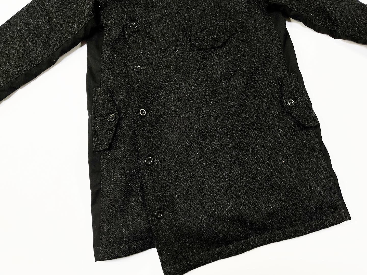 作品説明 : スコットランドのアウターヘブリディーズ諸島産のバージンウールを100%使用したメランジツイード生地を贅沢に使用した襟なしチベットコートになります。