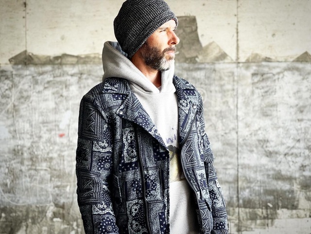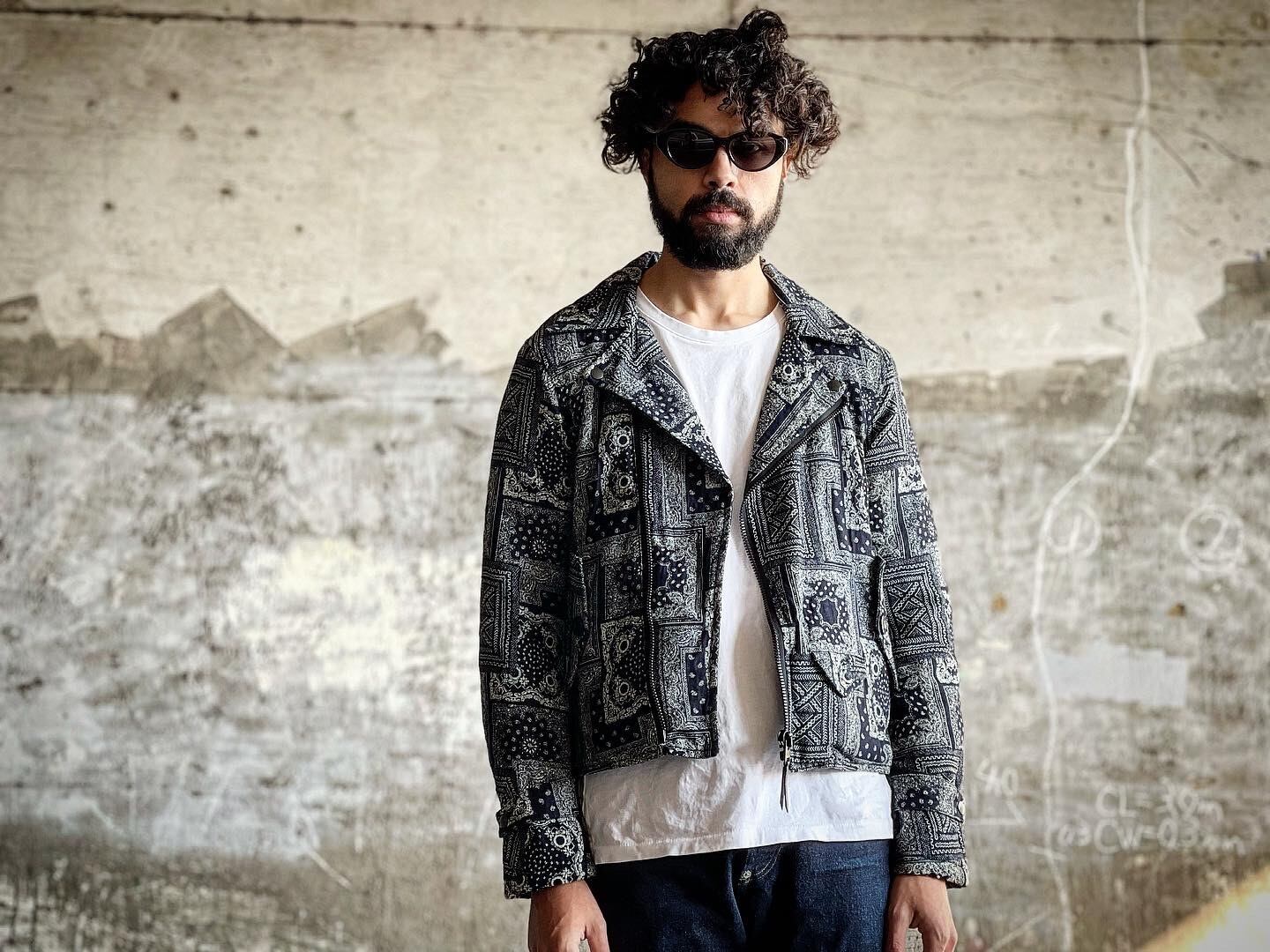 21AW バンダナインディゴジャガードライダースジャケット / Bandana indigo jacquard rider's jacket