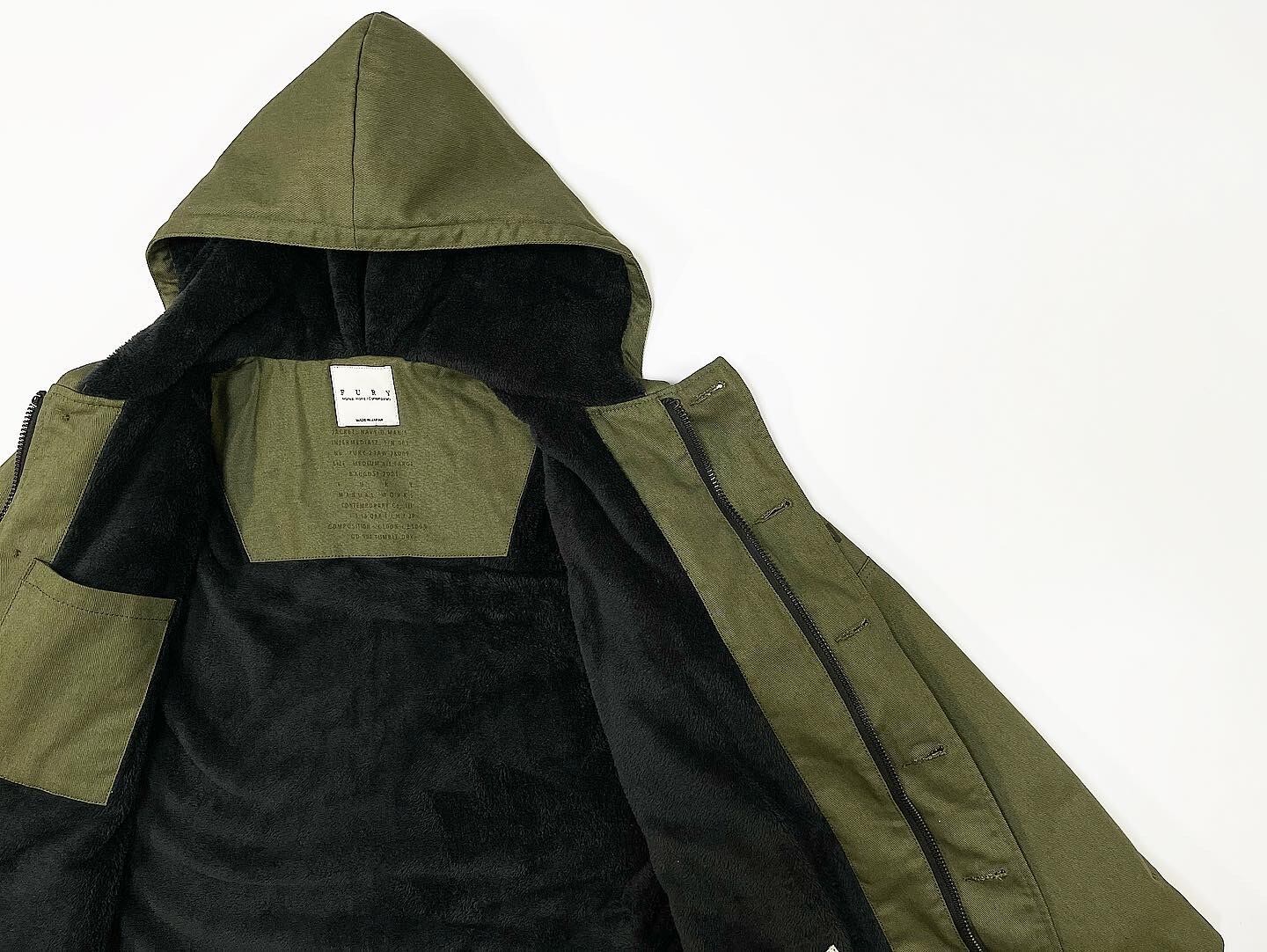 作品説明 : 綿100%のカツラギツイル生地を使用したとフード付きのN-1デッキコートになります。