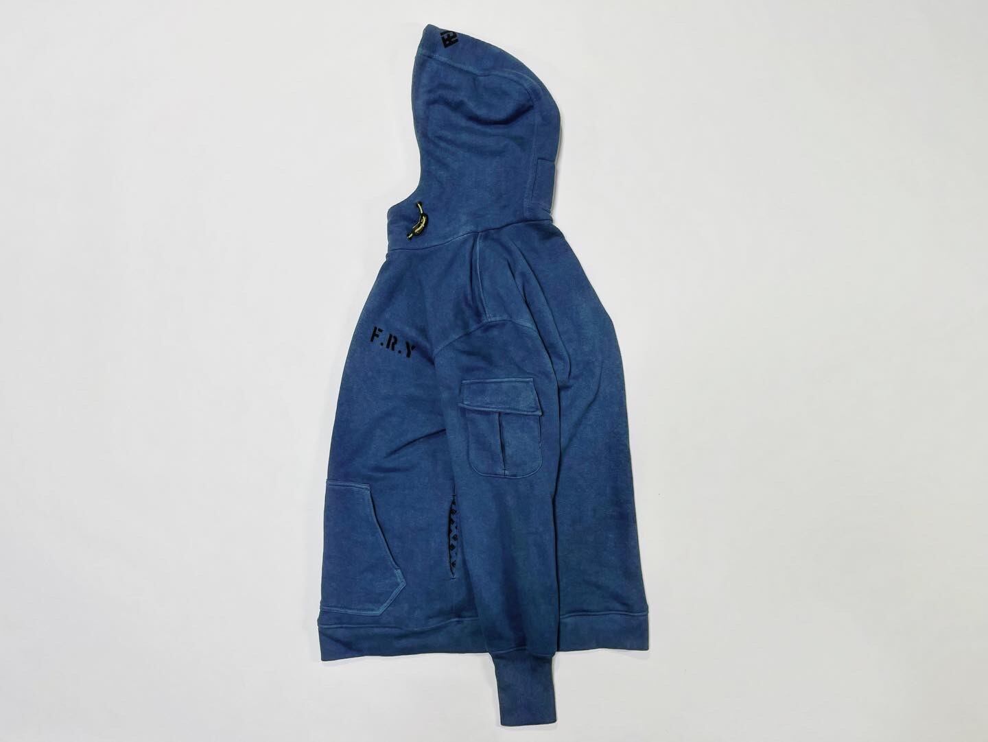 作品説明 : 和歌山はカネキチ工業様の綿100%TURIURAKE 30/10FRENCHTERRYを使用し、縫製後天然藍染めを施したパーカーになります。