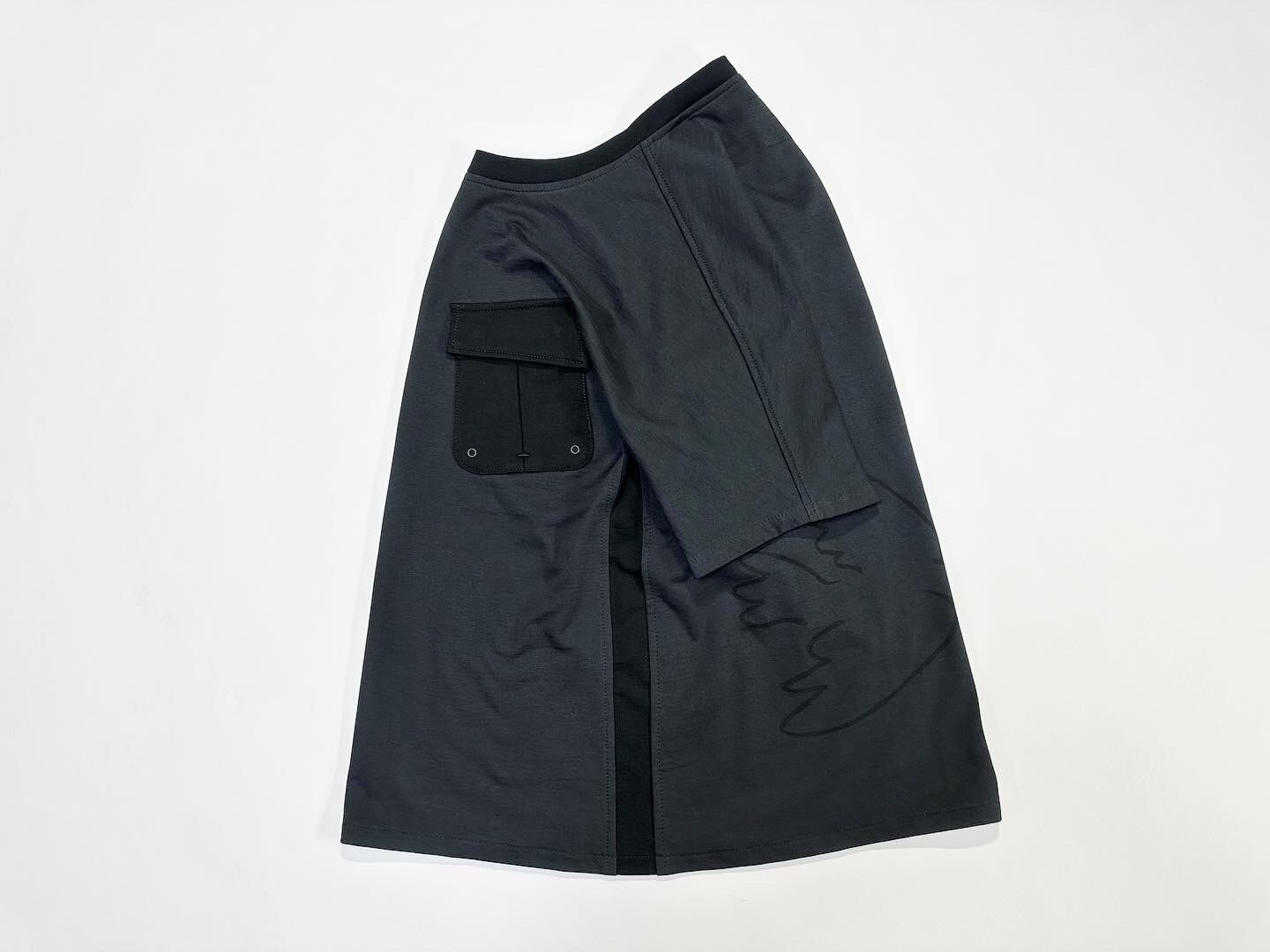 パターン構成の最大の特徴は袖の縫い繋ぎ部分をなくし前身頃と後身頃のパーツ2つで創り上げた事にあります。