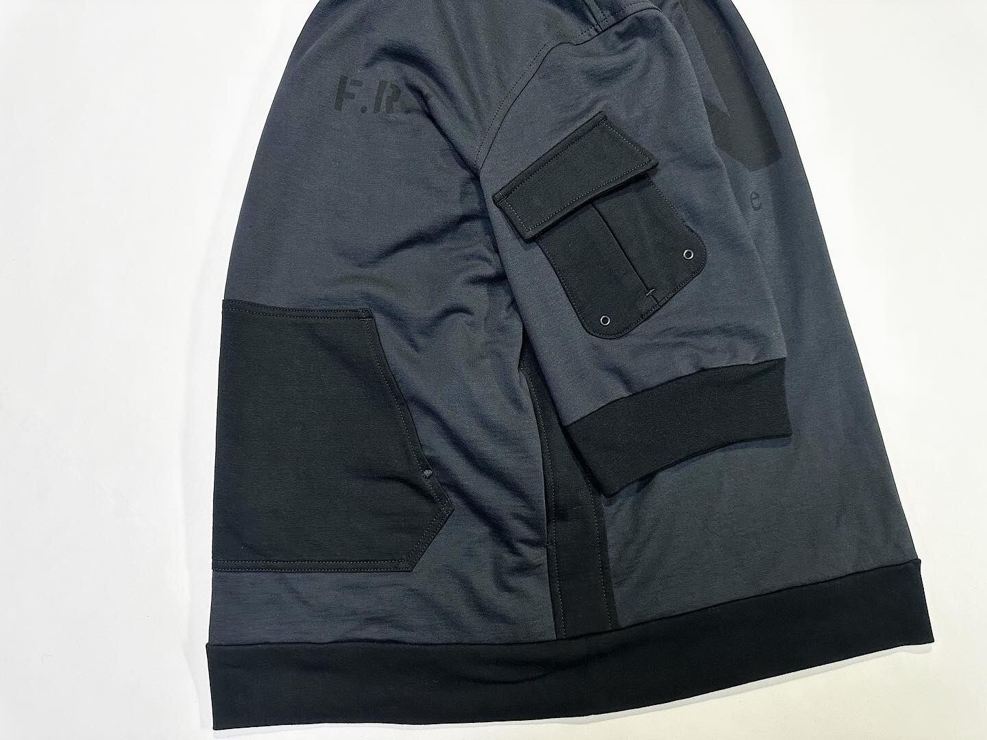 左袖には全て隠しドットボタンを仕込んだフラップ、マチ仕様による手の入れやすさ、大きく控えたタックによる大容量仕様、そしてユーティリティ感を増す斜めの付け位置に重点を置いたFURYオリジナルのファティーグポケットを設置。