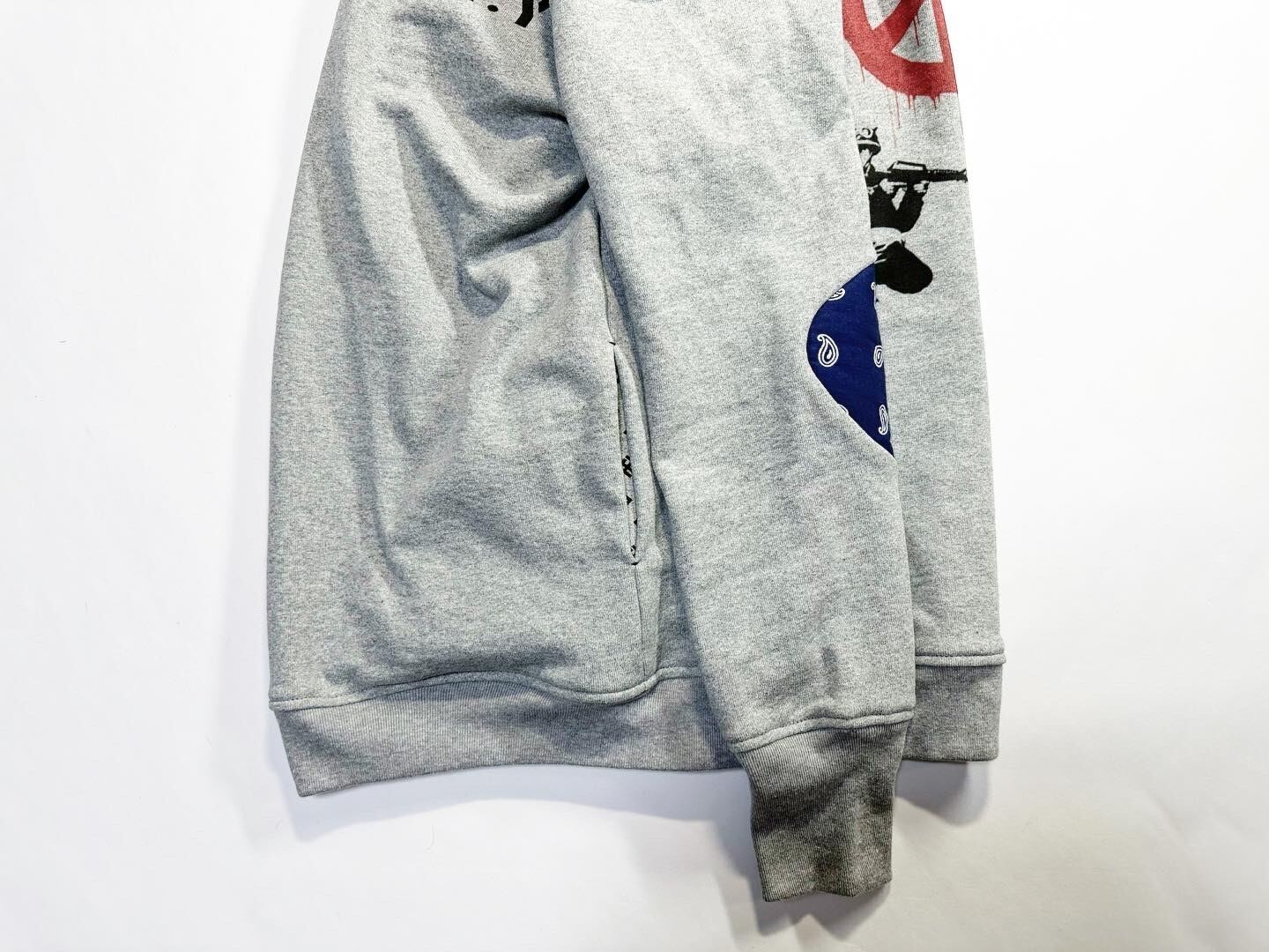 後身頃にはバンクシーのピースマークを題材にしたモチーフをインクジェットプリントしております。