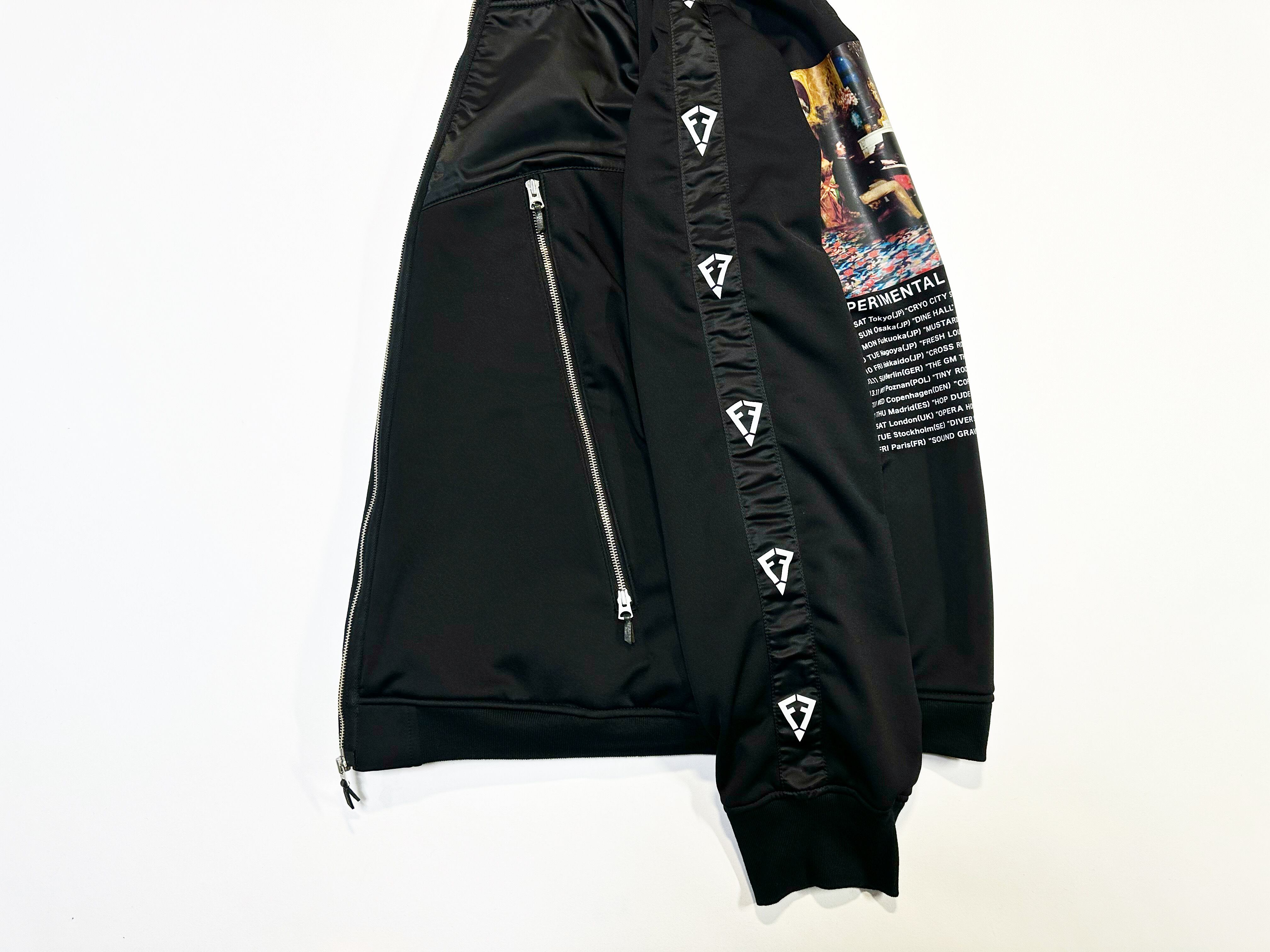 両袖にはスポーティーに今季エンブレムロゴを羅列、背中にはEXPERIMENTAL REVISIONS tourと題した架空のアーティストの架空のツアースケジュールを圧着プリントしてあります。